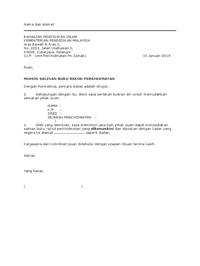 Contoh Surat Mohon Buku Rekod Perkhidmatan Di Bpi Pdf