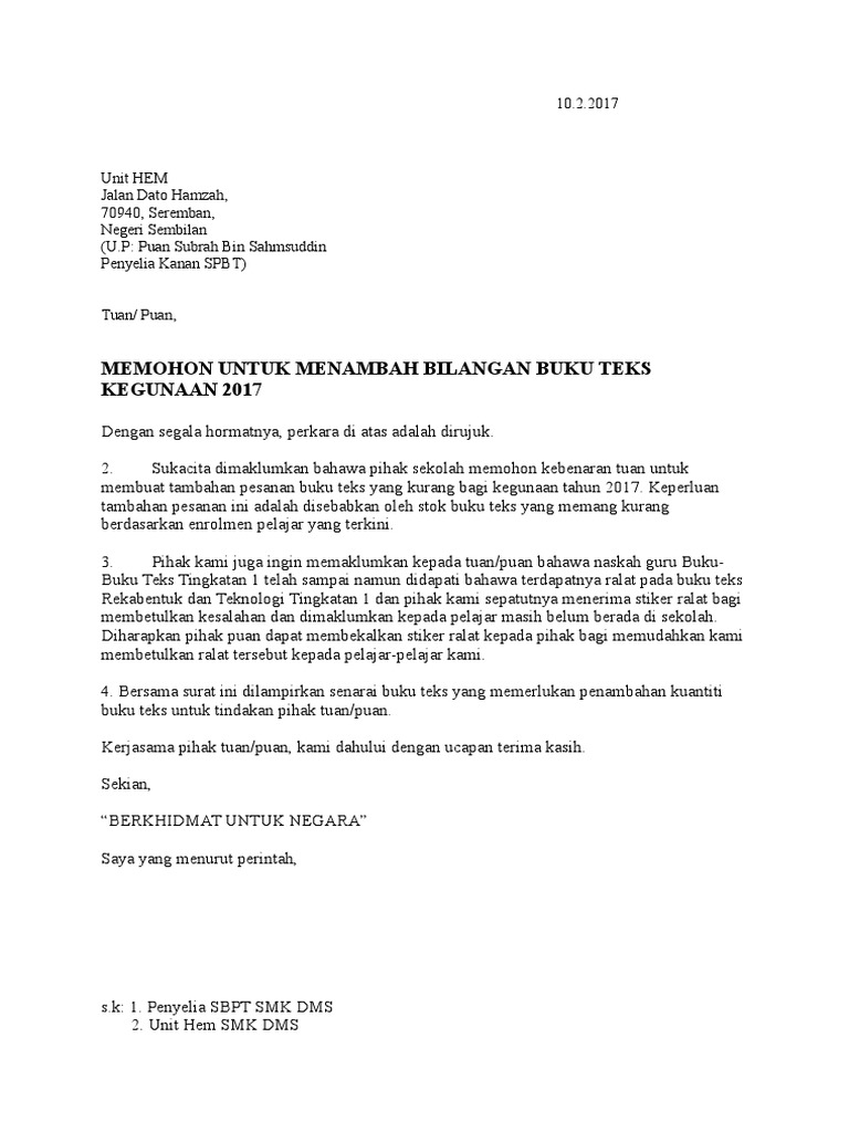 Surat Permohonan Penambahan Buku Teks Pdf
